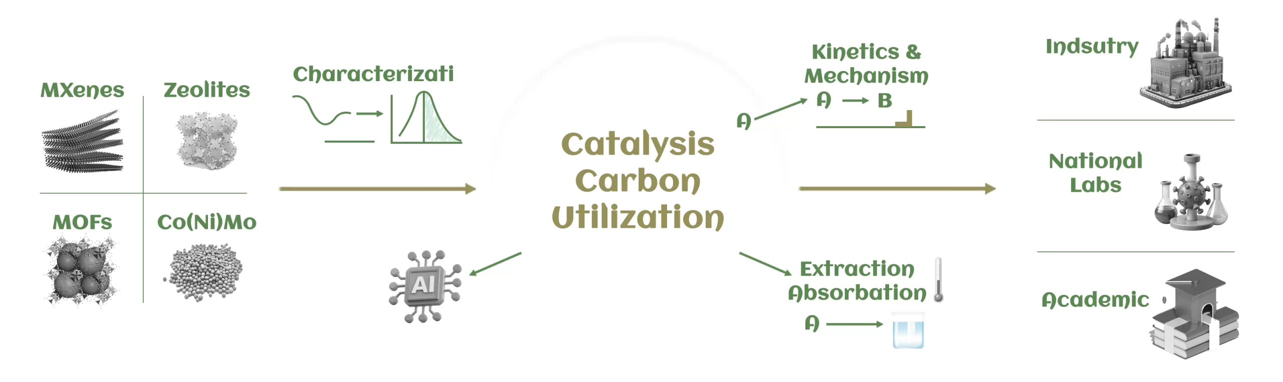 Our lab develops next-generation catalytic materials and processes to tackle global challenges in carbon valorization, clean energy, and water remediation. By combining molecular-level catalyst design, advanced characterization, and systems engineering, we bridge fundamental science with scalable solutions for industry.